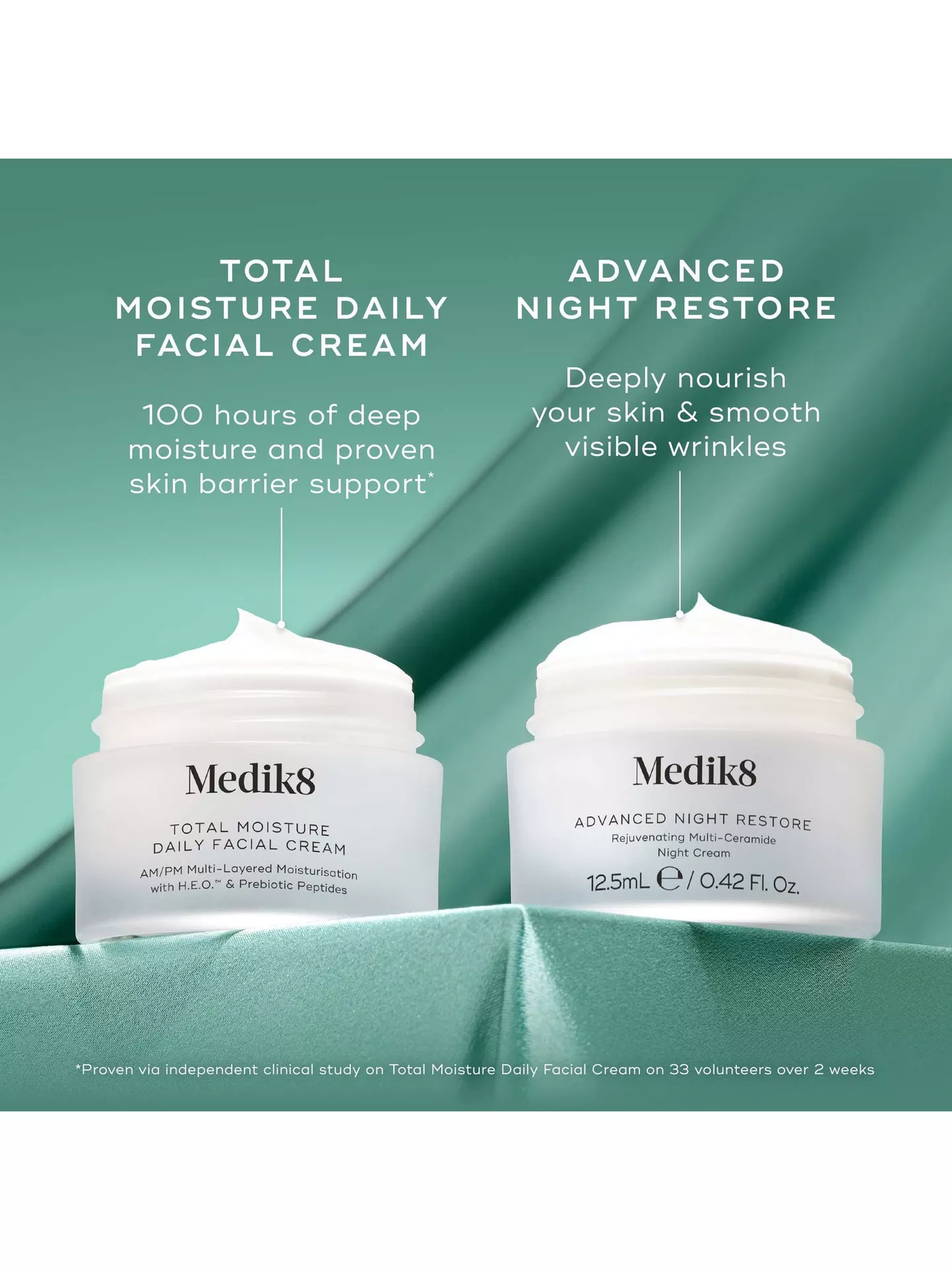 Με στόχο τη βελτίωση της υγείας του δέρματος, η Total Moisture Cream αφήνει την επιδερμίδα ανανεωμένη, ισορροπημένη και ορατά πιο ελαστική τόσο το πρωί όσο και το βράδυ. Χάρη στη μοναδική της σύνθεση, προσφέρει 100 ώρες ενυδάτωσης και +55% άμεση αύξηση της υγρασίας του δέρματος.